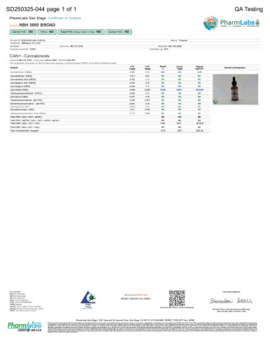 1 ml of NBHemp ™ “Adult Formula” oil contains 167 mg of phytocannabinoids (CBD, CBN, CBG).  The dropper in the cap has measurement markers of 0.25, 0.5, 0.75 and 1ml to help with serving size accuracy.