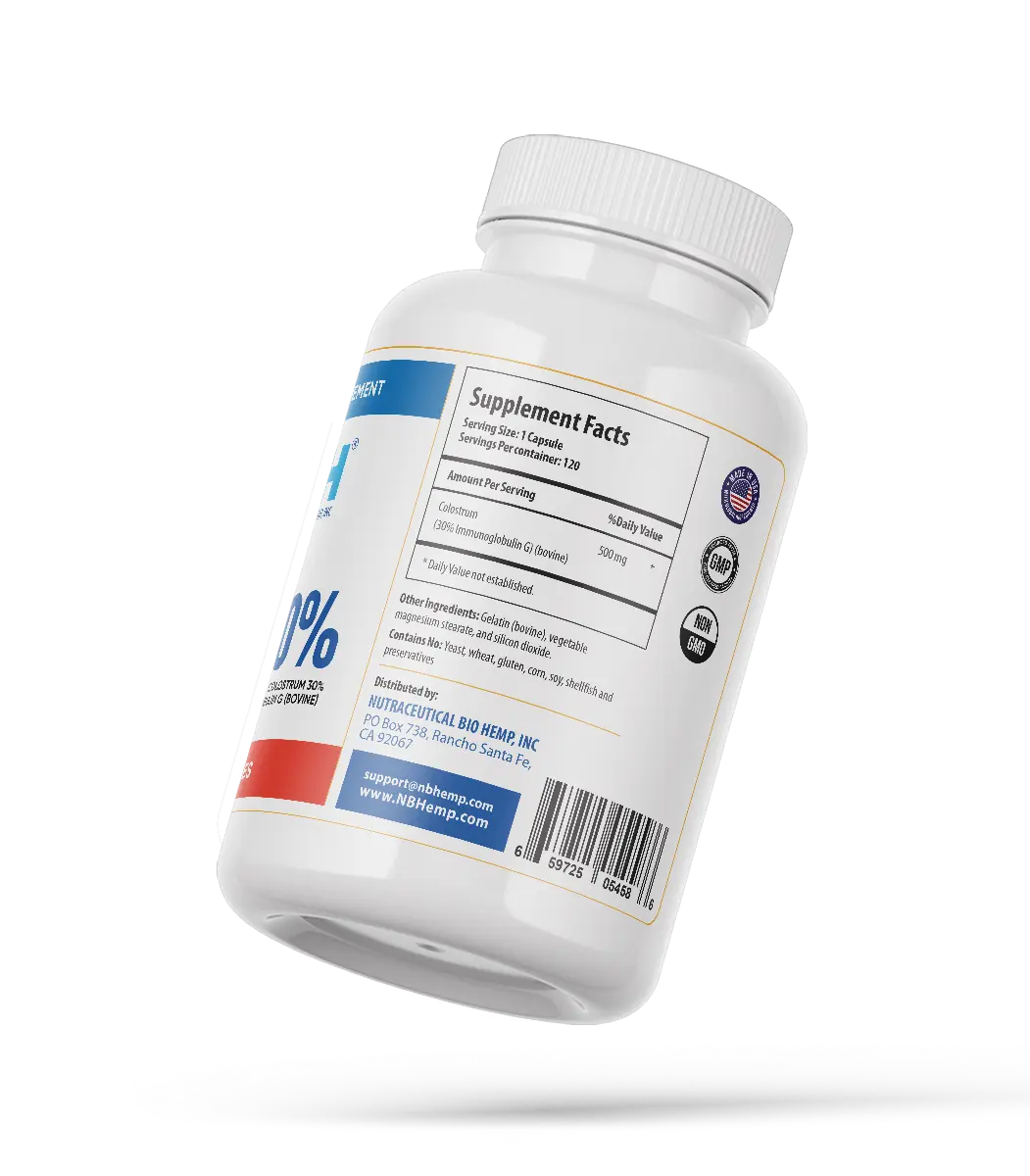 (стандартизированных до минимума 30% IgG), биоактивных белков и факторов роста, которые поддерживает здоровое пищеварение и поддерживают здоровую барьерную функцию кишечника.