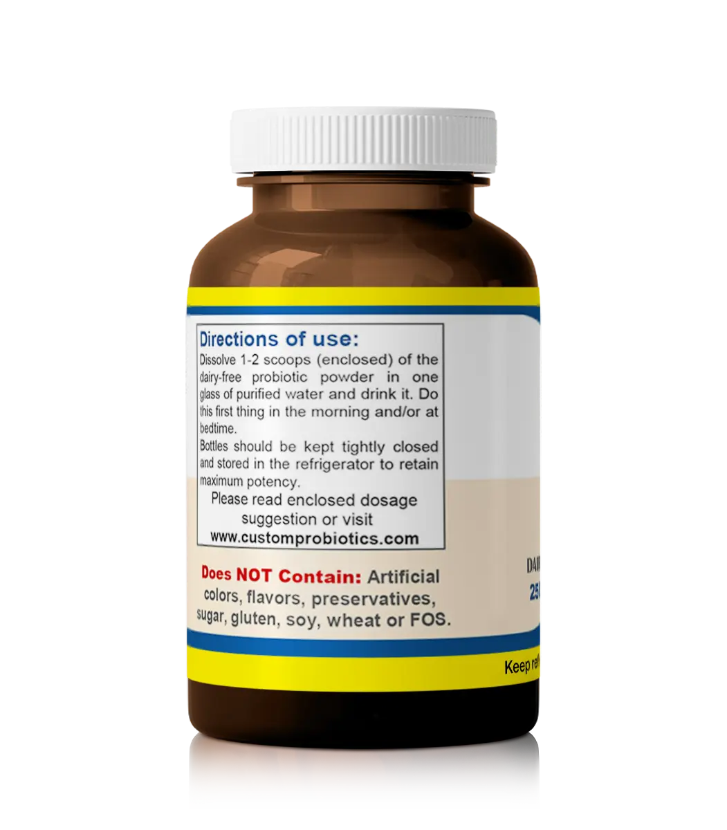 Custom Probiotics стабильны при комнатной температуре в течение нескольких недель без охлаждения и испытания подтверждают их стабильность в течении 2-х лет. Однако, лучше хранить пробиотики в холодильнике для сохранения оптимальной эффективности.